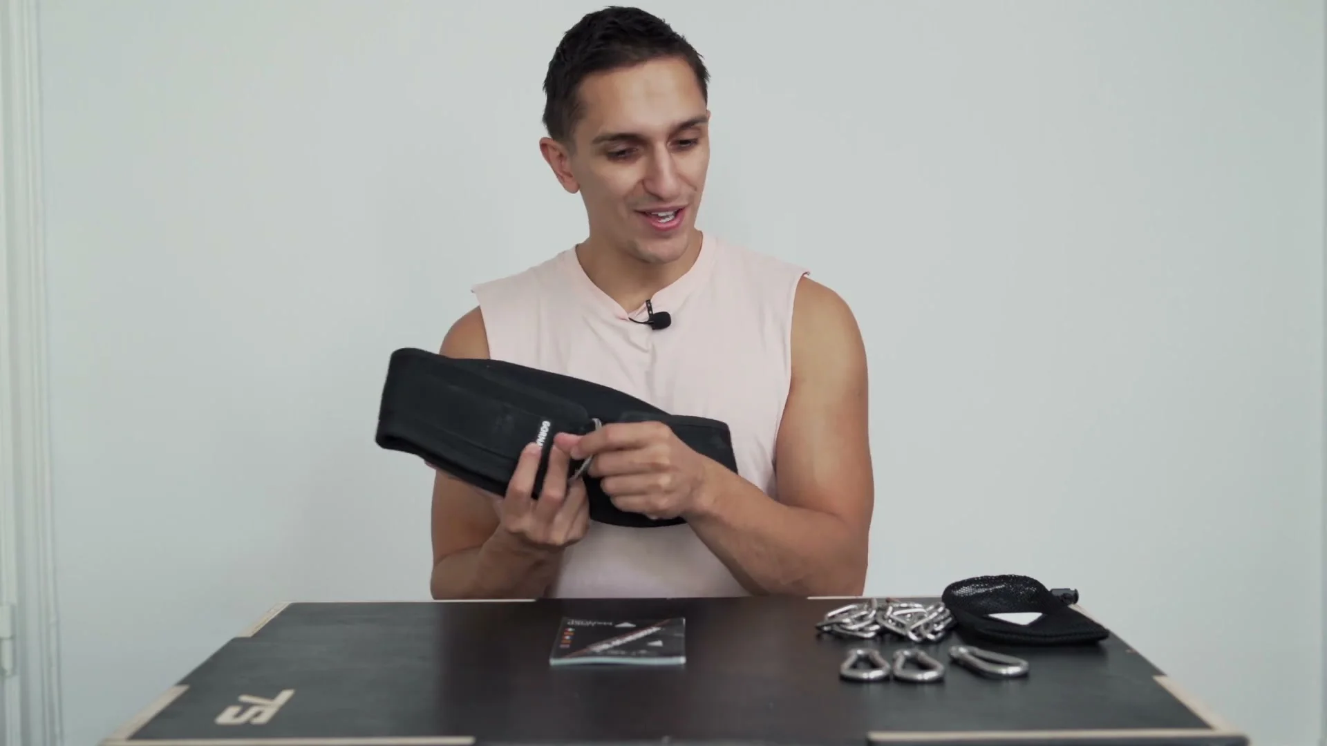 The box opens to reveal a small carry bag. Inside that bag you find the belt, a stainless steel chain, three carabiners, and an instruction manual. The storage bag is a detail most dip belts skip. It is a useful addition if you store or travel with your equipment.