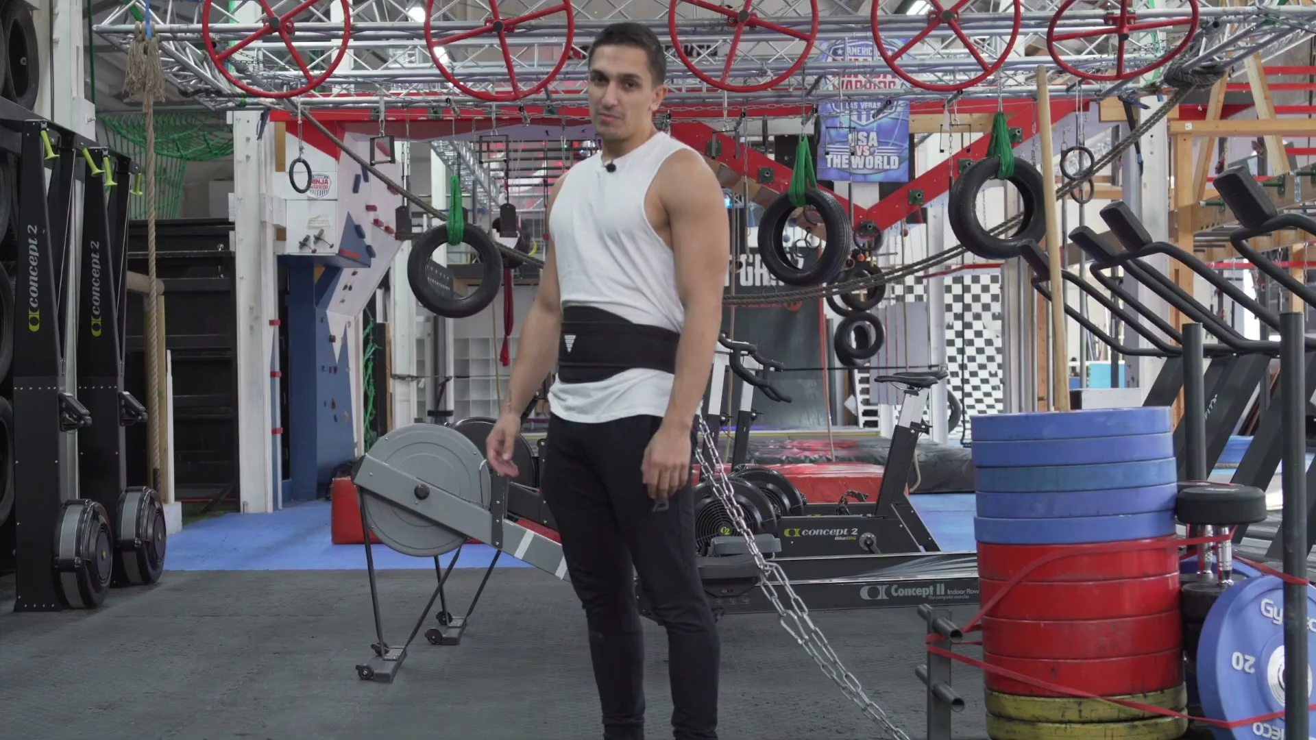 Test 2 (Rope pull on sledge): Using a rope and handle for assistance, I loaded the sledge progressively. The belt held at 410 kg. It held at 510 kg. At 710 kg the chain and carabiners stayed intact.