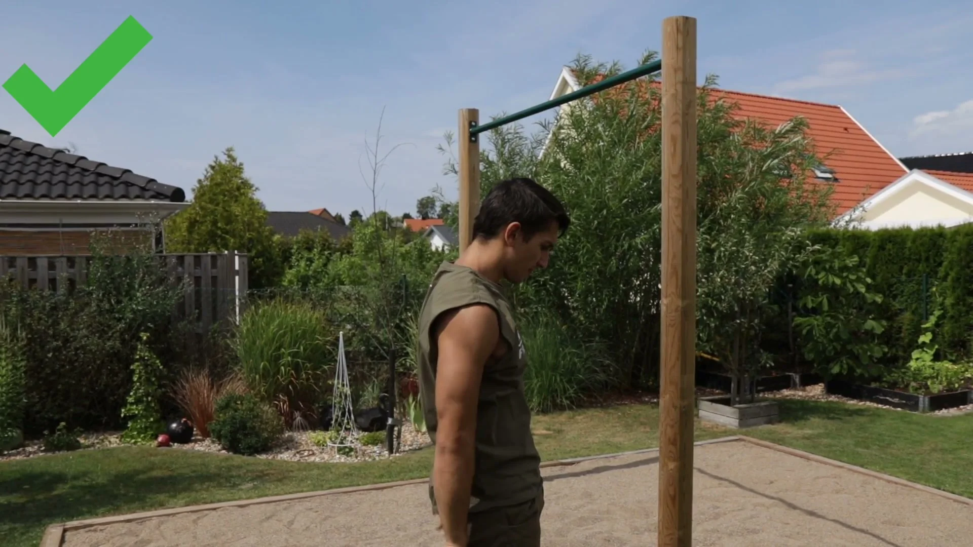 - Basic shoulder and lower back flexibility to bring feet past the bar